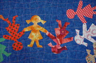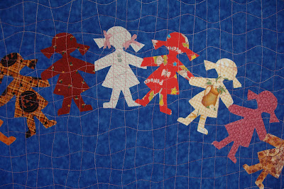 Il quilt del girotondo è stato realizzato con le bamboline, raccolte durante il quilting day di Monza 2008 e forma un fiore perchè il tema della giornata era "il mio giardino".