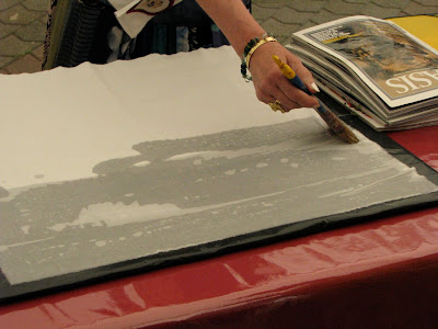 Many of you maybe already know this technique used to paint fabrics. I didn't know it and I was bewitched.