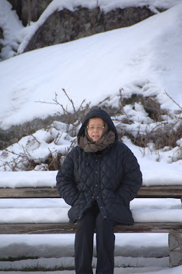 The 'ice sculpture' looks so beautiful. You look as though you were freezing - hope you get some warmth soon.