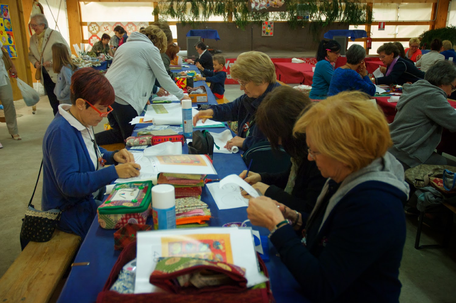 Il tempo era brutto brutto, pioveva e faceva freddo ma tutte le signore arrivate in Valpelline per il quilting day, il freddo non l'hanno proprio sentito, erano troppo impegnate a lavorare.